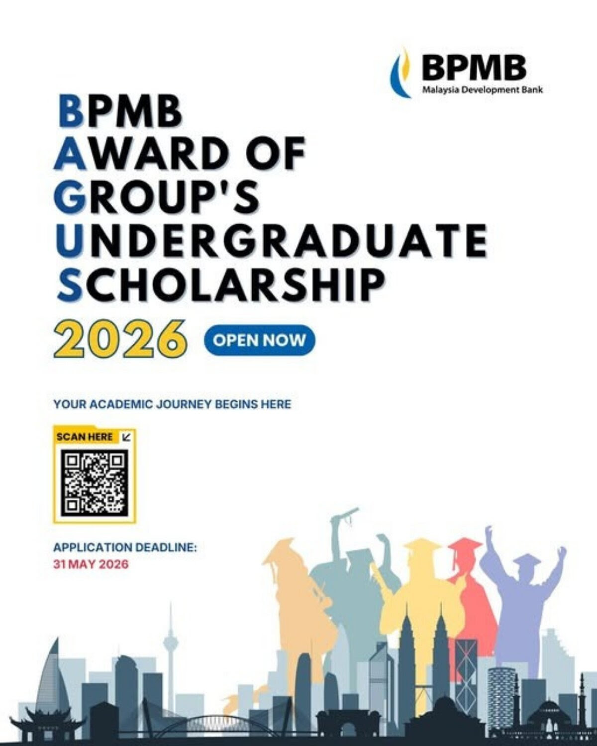 Bank Pembangunan Malaysia Berhad (BPMB) menawarkan Biasiswa Sarjana Muda Anugerah Kumpulan BPMB (BAGUS) untuk pelajar cemerlang Malaysia. Peluang ini membolehkan anda belajar di universiti terpilih dalam dan luar negara!