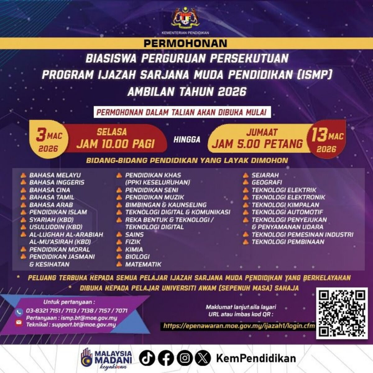 Sukacita dimaklumkan bahawa Jabatan Perkhidmatan Awam (JPA) kini membuka tawaran Program Khas Perubatan, Pergigian dan Farmasi Ijazah Pertama (PPF) bagi Tahun 2026. Anda bercita-cita menjadi doktor, doktor gigi atau ahli farmasi? Ini adalah peluang anda untuk mendapatkan Penajaan Pinjaman Boleh Ubah (PBU) melalui Program Khas Perubatan, Pergigian dan Farmasi Ijazah Pertama (PPF) bagi Tahun 2026!
