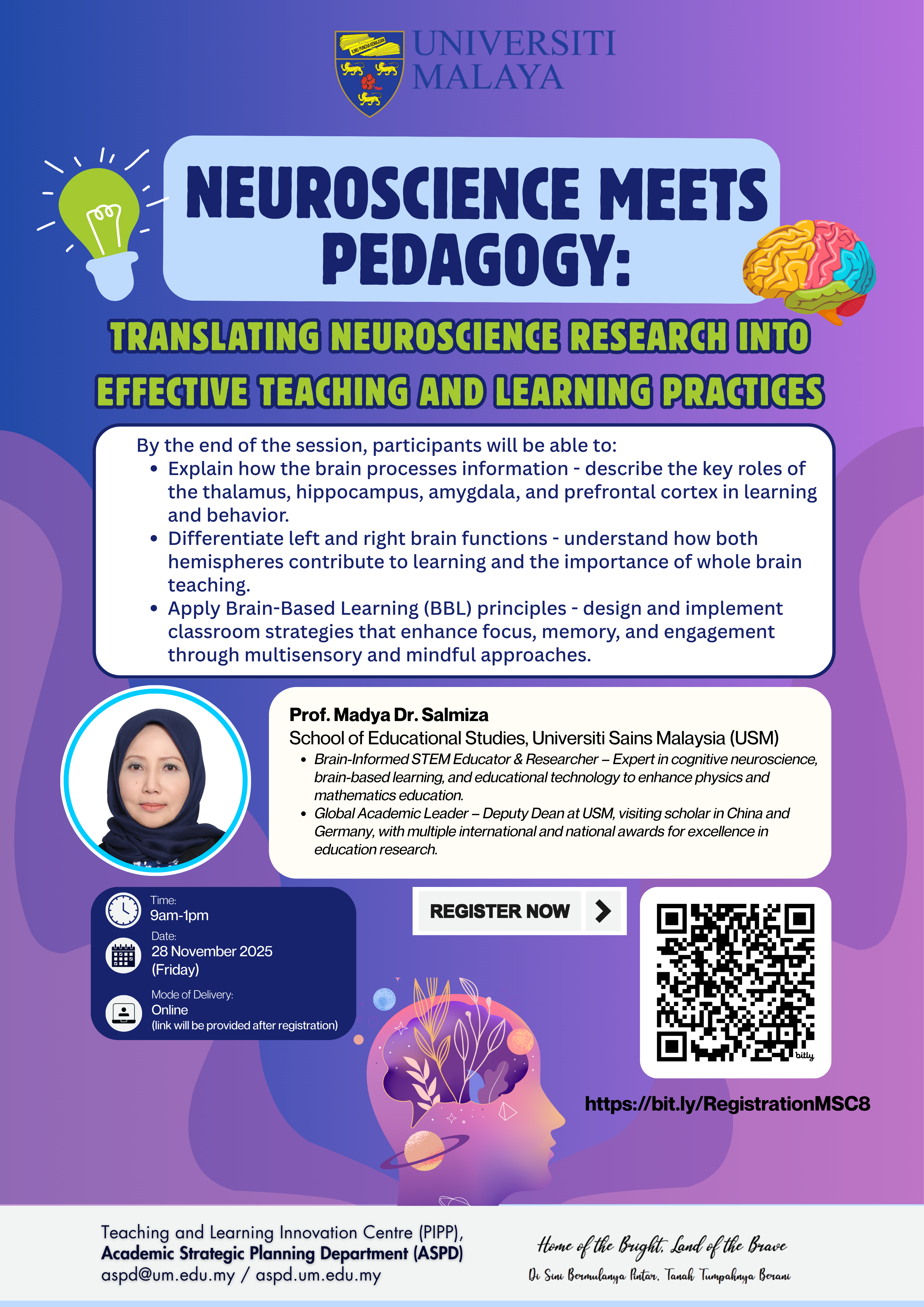This calendar provides a schedule of training sessions, workshops, and professional development programmes organized under the Academic Strategic Planning Division (ASPD), Universiti Malaya. It serves as a reference for academic and administrative staff to stay informed about upcoming ASPD capacity-building initiatives.