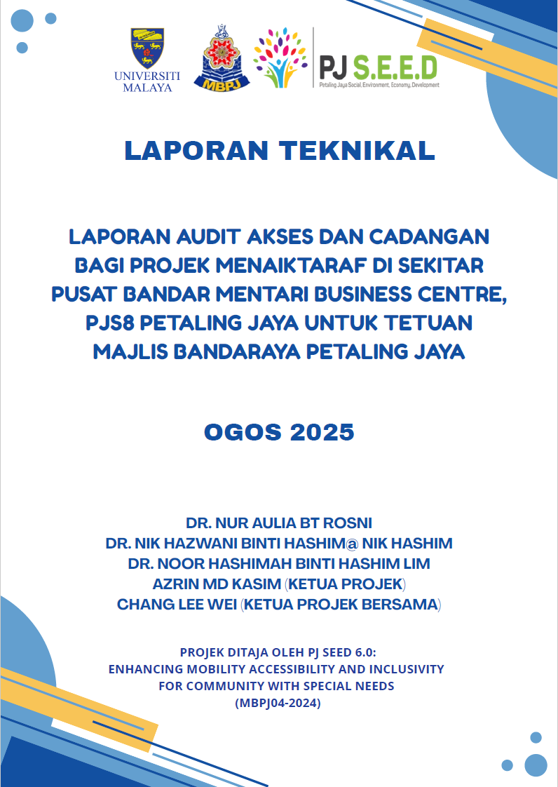 ![]() | Laporan Audit Akses dan Cadangan bagi Projek Menaiktaraf di Sekitar Pusat Bandar Mentari Business Centre, PJS8 Petaling Jaya untuk Tetuan Majlis Bandaraya Petaling Jaya Author(s)/Editor(s): Nur Aulia Rosni, Nik Hazwani Hashim @ Nik Hashim, Noor Hashimah Hashim Lim, Azrin Md Kasim, Chang Lee Wei Year of Publication: 2025 Click here for more information | ![]() | Grant Report on Enculturation of Universal Values in Daily Activities towards Social Wellbeing from Diverse Religions Background among the Young Generations Author(s)/Editor(s): Rosilawati Zainol, Chang Lee Wei, Ahmad Mohamad, Nur Lisa Mohd Yusoff Year of Publication: 2025 Click here for more information |